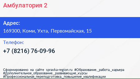 Амбулатория №2 по адресу 169300, Коми, Ухта, Первомайская, 15 в дальнейшем Организация, размещена в следующих категориях: