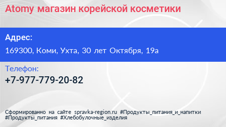 Atomy, магазин корейской косметики по адресу 169300, Коми, Ухта, 30 лет Октября, 19а в дальнейшем Организация, размещена в следующих категориях: