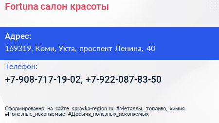 Fortuna, салон красоты по адресу 169319, Коми, Ухта, проспект Ленина, 40 в дальнейшем Организация, размещена в следующих категориях:
