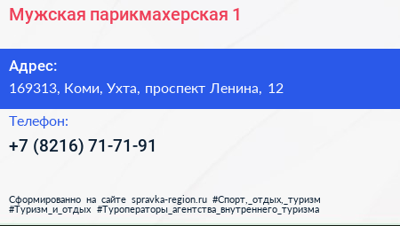 Мужская парикмахерская №1 по адресу 169313, Коми, Ухта, проспект Ленина, 12 в дальнейшем Организация, размещена в следующих категориях: