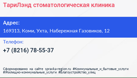 ТариЛэнд, стоматологическая клиника по адресу 169313, Коми, Ухта, Набережная Газовиков, 12 в дальнейшем Организация, размещена в следующих категориях:
