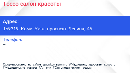 Tocco, салон красоты по адресу 169319, Коми, Ухта, проспект Ленина, 45 в дальнейшем Организация, размещена в следующих категориях: