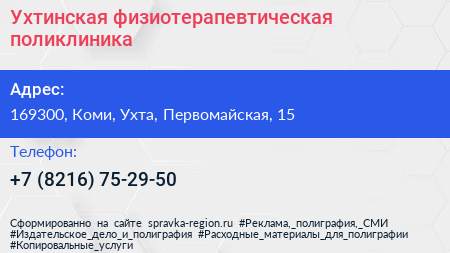 Ухтинская физиотерапевтическая поликлиника по адресу 169300, Коми, Ухта, Первомайская, 15 в дальнейшем Организация, размещена в следующих категориях: