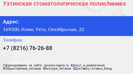 Ухтинская стоматологическая поликлиника по адресу 169300, Коми, Ухта, Октябрьская, 22 в дальнейшем Организация, размещена в следующих категориях: