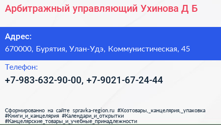Арбитражный управляющий Ухинова Д.Б. по адресу 670000, Бурятия, Улан-Удэ, Коммунистическая, 45 в дальнейшем Организация, размещена в следующих категориях: