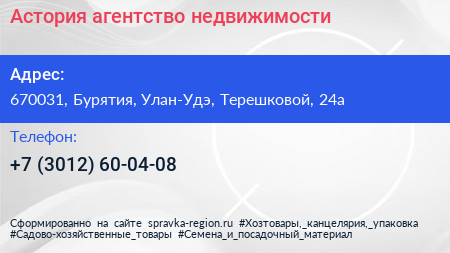 Астория, агентство недвижимости по адресу 670031, Бурятия, Улан-Удэ, Терешковой, 24а в дальнейшем Организация, размещена в следующих категориях: