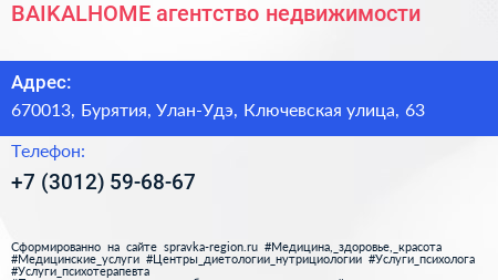 BAIKALHOME, агентство недвижимости по адресу 670013, Бурятия, Улан-Удэ, Ключевская улица, 63 в дальнейшем Организация, размещена в следующих категориях: