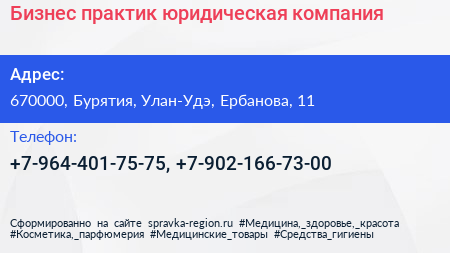 Бизнес практик, юридическая компания по адресу 670000, Бурятия, Улан-Удэ, Ербанова, 11 в дальнейшем Организация, размещена в следующих категориях: