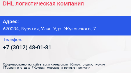 DHL, логистическая компания по адресу 670034, Бурятия, Улан-Удэ, Жуковского, 7 в дальнейшем Организация, размещена в следующих категориях: