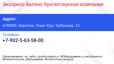Экспресс-баланс, бухгалтерская компания по адресу 670000, Бурятия, Улан-Удэ, Ербанова, 11 в дальнейшем Организация, размещена в следующих категориях:
