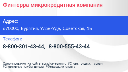 Финтерра, микрокредитная компания по адресу 670000, Бурятия, Улан-Удэ, Советская, 1Б в дальнейшем Организация, размещена в следующих категориях: