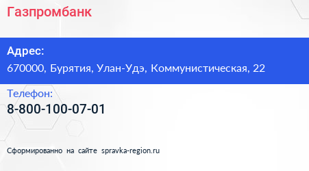 Газпромбанк по адресу 670000, Бурятия, Улан-Удэ, Коммунистическая, 22 в дальнейшем Организация, размещена в следующих категориях: