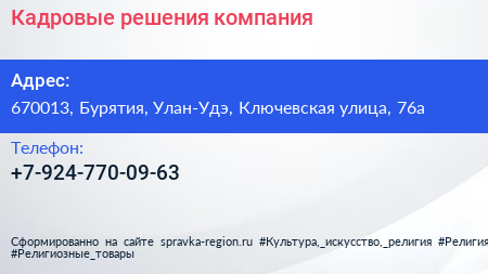 Кадровые решения, компания по адресу 670013, Бурятия, Улан-Удэ, Ключевская улица, 76а в дальнейшем Организация, размещена в следующих категориях: