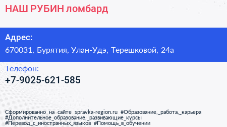 НАШ РУБИН, ломбард по адресу 670031, Бурятия, Улан-Удэ, Терешковой, 24а в дальнейшем Организация, размещена в следующих категориях:
