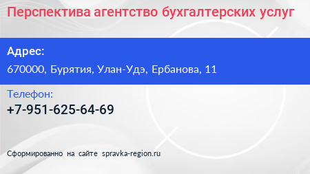 Перспектива, агентство бухгалтерских услуг по адресу 670000, Бурятия, Улан-Удэ, Ербанова, 11 в дальнейшем Организация, размещена в следующих категориях: