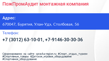 ПожПромАудит, монтажная компания по адресу 670047, Бурятия, Улан-Удэ, Столбовая, 56 в дальнейшем Организация, размещена в следующих категориях: