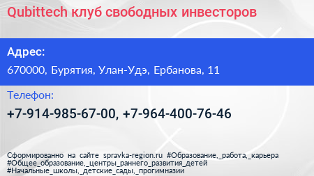 Qubittech, клуб свободных инвесторов по адресу 670000, Бурятия, Улан-Удэ, Ербанова, 11 в дальнейшем Организация, размещена в следующих категориях:
