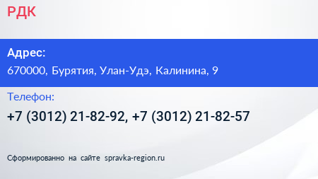 РДК по адресу 670000, Бурятия, Улан-Удэ, Калинина, 9 в дальнейшем Организация, размещена в следующих категориях: