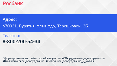 Росбанк по адресу 670031, Бурятия, Улан-Удэ, Терешковой, 3Б в дальнейшем Организация, размещена в следующих категориях: