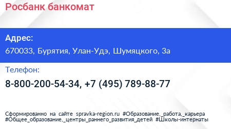 Росбанк, банкомат по адресу 670033, Бурятия, Улан-Удэ, Шумяцкого, 3а в дальнейшем Организация, размещена в следующих категориях: