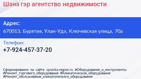 Шэнэ гэр, агентство недвижимости по адресу 670013, Бурятия, Улан-Удэ, Ключевская улица, 70а в дальнейшем Организация, размещена в следующих категориях: