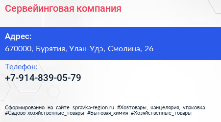 Сервейинговая компания по адресу 670000, Бурятия, Улан-Удэ, Смолина, 26 в дальнейшем Организация, размещена в следующих категориях: