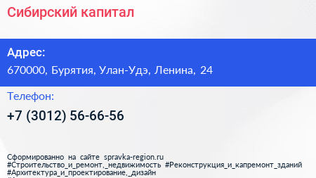 Сибирский капитал по адресу 670000, Бурятия, Улан-Удэ, Ленина, 24 в дальнейшем Организация, размещена в следующих категориях: