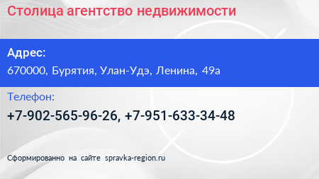 Столица, агентство недвижимости по адресу 670000, Бурятия, Улан-Удэ, Ленина, 49а в дальнейшем Организация, размещена в следующих категориях: