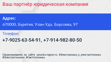Ваш партнёр, юридическая компания по адресу 670000, Бурятия, Улан-Удэ, Борсоева, 97 в дальнейшем Организация, размещена в следующих категориях: