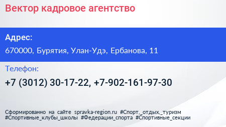 Вектор, кадровое агентство по адресу 670000, Бурятия, Улан-Удэ, Ербанова, 11 в дальнейшем Организация, размещена в следующих категориях: