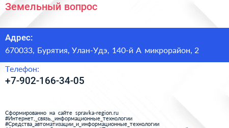 Земельный вопрос по адресу 670033, Бурятия, Улан-Удэ, 140-й А микрорайон, 2 в дальнейшем Организация, размещена в следующих категориях: