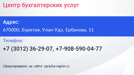 Центр бухгалтерских услуг по адресу 670000, Бурятия, Улан-Удэ, Ербанова, 11 в дальнейшем Организация, размещена в следующих категориях: