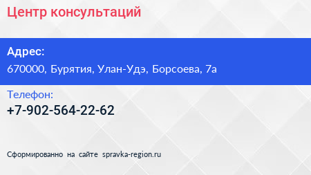 Центр консультаций по адресу 670000, Бурятия, Улан-Удэ, Борсоева, 7а в дальнейшем Организация, размещена в следующих категориях: