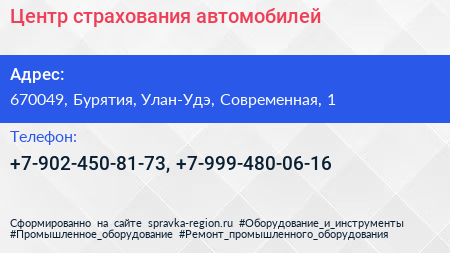 Центр страхования автомобилей по адресу 670049, Бурятия, Улан-Удэ, Современная, 1 в дальнейшем Организация, размещена в следующих категориях: