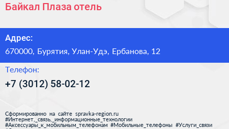 Байкал Плаза, отель по адресу 670000, Бурятия, Улан-Удэ, Ербанова, 12 в дальнейшем Организация, размещена в следующих категориях: