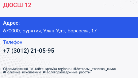 ДЮСШ №12 по адресу 670000, Бурятия, Улан-Удэ, Борсоева, 17 в дальнейшем Организация, размещена в следующих категориях: