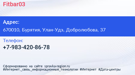 Fitbar03 по адресу 670010, Бурятия, Улан-Удэ, Добролюбова, 37 в дальнейшем Организация, размещена в следующих категориях: