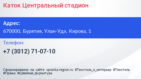 Каток, Центральный стадион по адресу 670000, Бурятия, Улан-Удэ, Кирова, 1 в дальнейшем Организация, размещена в следующих категориях: