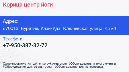 Корица, центр йоги по адресу 670013, Бурятия, Улан-Удэ, Ключевская улица, 4а к4 в дальнейшем Организация, размещена в следующих категориях: