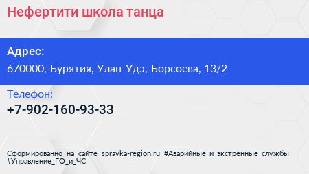 Нефертити, школа танца по адресу 670000, Бурятия, Улан-Удэ, Борсоева, 13/2 в дальнейшем Организация, размещена в следующих категориях: