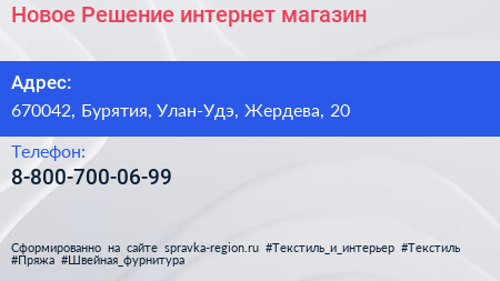 Новое Решение, интернет-магазин по адресу 670042, Бурятия, Улан-Удэ, Жердева, 20 в дальнейшем Организация, размещена в следующих категориях: