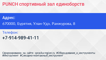 PUNCH, спортивный зал единоборств по адресу 670000, Бурятия, Улан-Удэ, Ранжурова, 8 в дальнейшем Организация, размещена в следующих категориях: