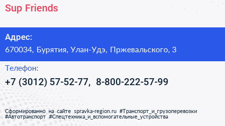 Sup Friends по адресу 670034, Бурятия, Улан-Удэ, Пржевальского, 3 в дальнейшем Организация, размещена в следующих категориях: