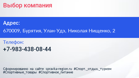 Выбор, компания по адресу 670009, Бурятия, Улан-Удэ, Николая Нищенко, 2 в дальнейшем Организация, размещена в следующих категориях: