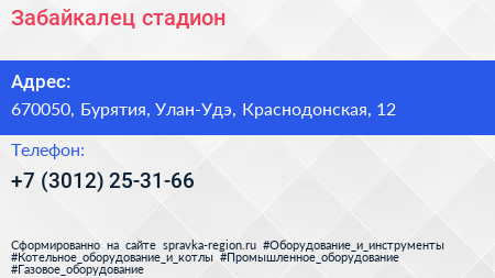 Забайкалец, стадион по адресу 670050, Бурятия, Улан-Удэ, Краснодонская, 12 в дальнейшем Организация, размещена в следующих категориях: