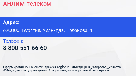 АНЛИМ телеком по адресу 670000, Бурятия, Улан-Удэ, Ербанова, 11 в дальнейшем Организация, размещена в следующих категориях: