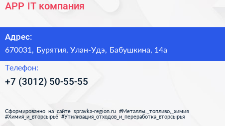 APP, IT-компания по адресу 670031, Бурятия, Улан-Удэ, Бабушкина, 14а в дальнейшем Организация, размещена в следующих категориях: