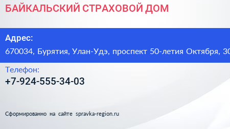 БАЙКАЛЬСКИЙ СТРАХОВОЙ ДОМ по адресу 670034, Бурятия, Улан-Удэ, проспект 50-летия Октября, 30 в дальнейшем Организация, размещена в следующих категориях: