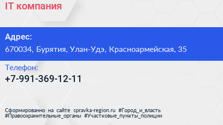 IT-компания по адресу 670034, Бурятия, Улан-Удэ, Красноармейская, 35 в дальнейшем Организация, размещена в следующих категориях: