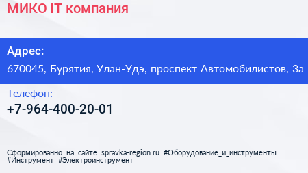 МИКО, IT-компания по адресу 670045, Бурятия, Улан-Удэ, проспект Автомобилистов, 3а в дальнейшем Организация, размещена в следующих категориях: